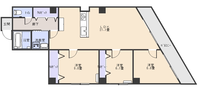 ■ 浴室乾燥 ■ 大型洗面台 ■ 大型バルコニー ■ テレビ付きインターホン